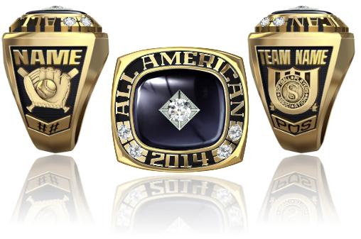 Available in a variety of fine and precious metals, this ring or pendant is personalized with up to 12 characters per side for Team name, Player name, number and position.